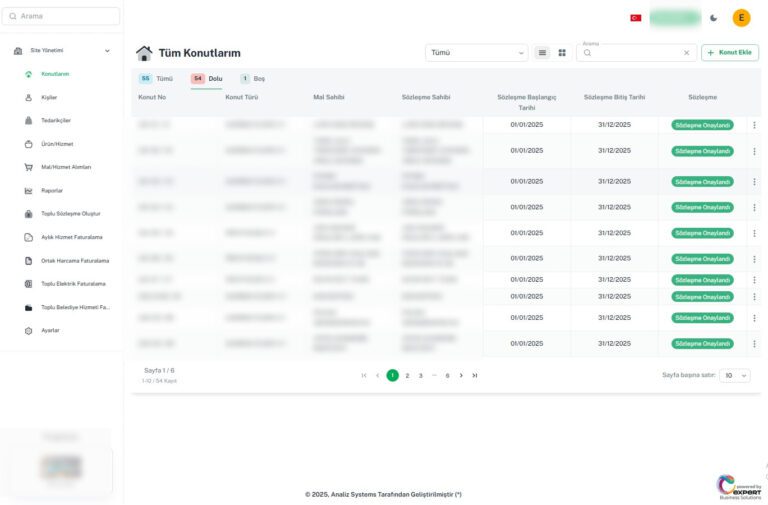 Site Yönetim Modülü; sakinler, bağımsız bölümler, aidatlar ve operasyonel süreçlerin merkezi bir sistem üzerinden düzenli ve verimli şekilde yönetilmesini sağlar.